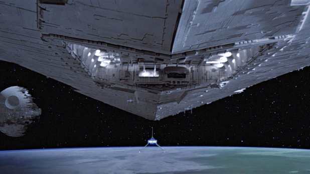 Near the end of the Jabba sequence, we get one of the more unique action scenes of the franchise. As Luke is about to be fed into the carnivorous Sarlac pit, our Jedi jumps into action with his new green lightsaber. It’s great fun watching Luke embrace his inner Errol Flynn in the swashbuckling sequence, freeing his captive friends and causing mayhem. Even Leia gets in on the fun, going full-on, “I am woman, hear me roar,” and strangles the slug-like Jabba with her kinky chain neck hold (maybe that slave outfit was helpful after all.)