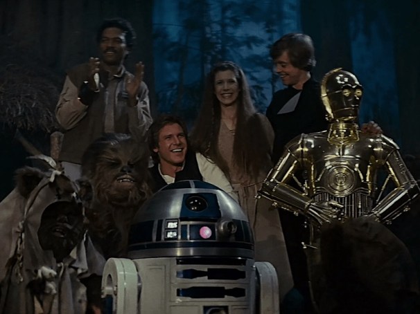 We also get a new Ewok victory song during the film’s closing moments, with a montage of the inhabitants of Tatooine, Cloud City, and our first glimpse of Coruscant, all celebrating the fall of the Empire.
