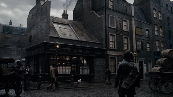 To fully appreciate the movie incarnation of Sweeney Todd, you must separate the film from the stage show. Sondheim, who approved the changes and collaborated closely with the filmmakers, considers Burton’s movie a companion piece to the Broadway production. This isn’t the staged show being filmed but a movie version of the musical. Screenwriter John Logan takes an (ahem) butcher knife to the darkly operatic score, jettisoning many popular tunes like The Ballad ofSweeney Todd (that was to be sung by Christopher Lee and Anthony Stuart Head) and trimming others down to resemble a traditional musical. And the romance between Anthony and Todd’s daughter Johanna has been scaled way back to broad brushstrokes. Another key change was reducing the age of Toby to a 10-year-old from the naïve, simple adult in the stage version.